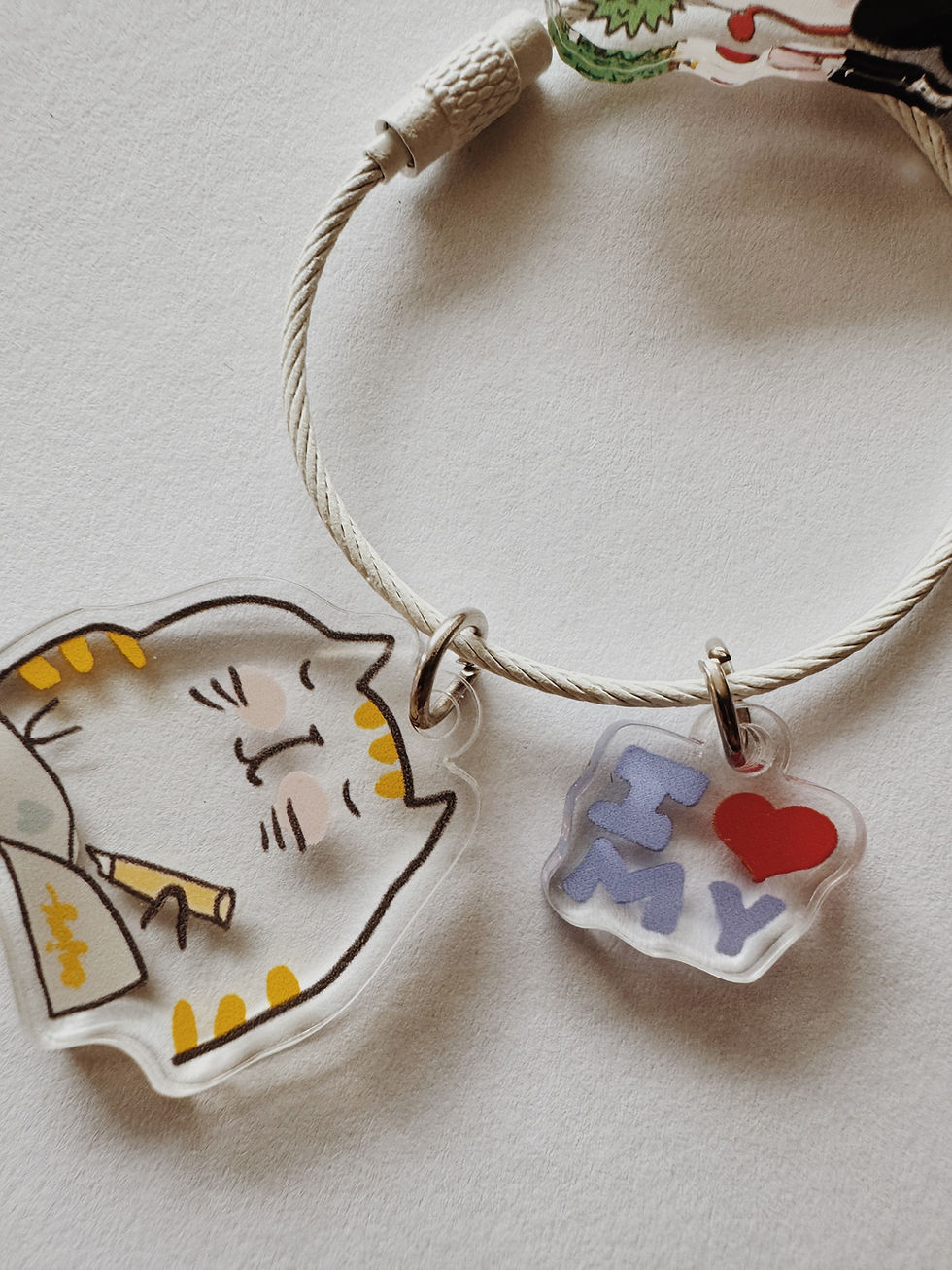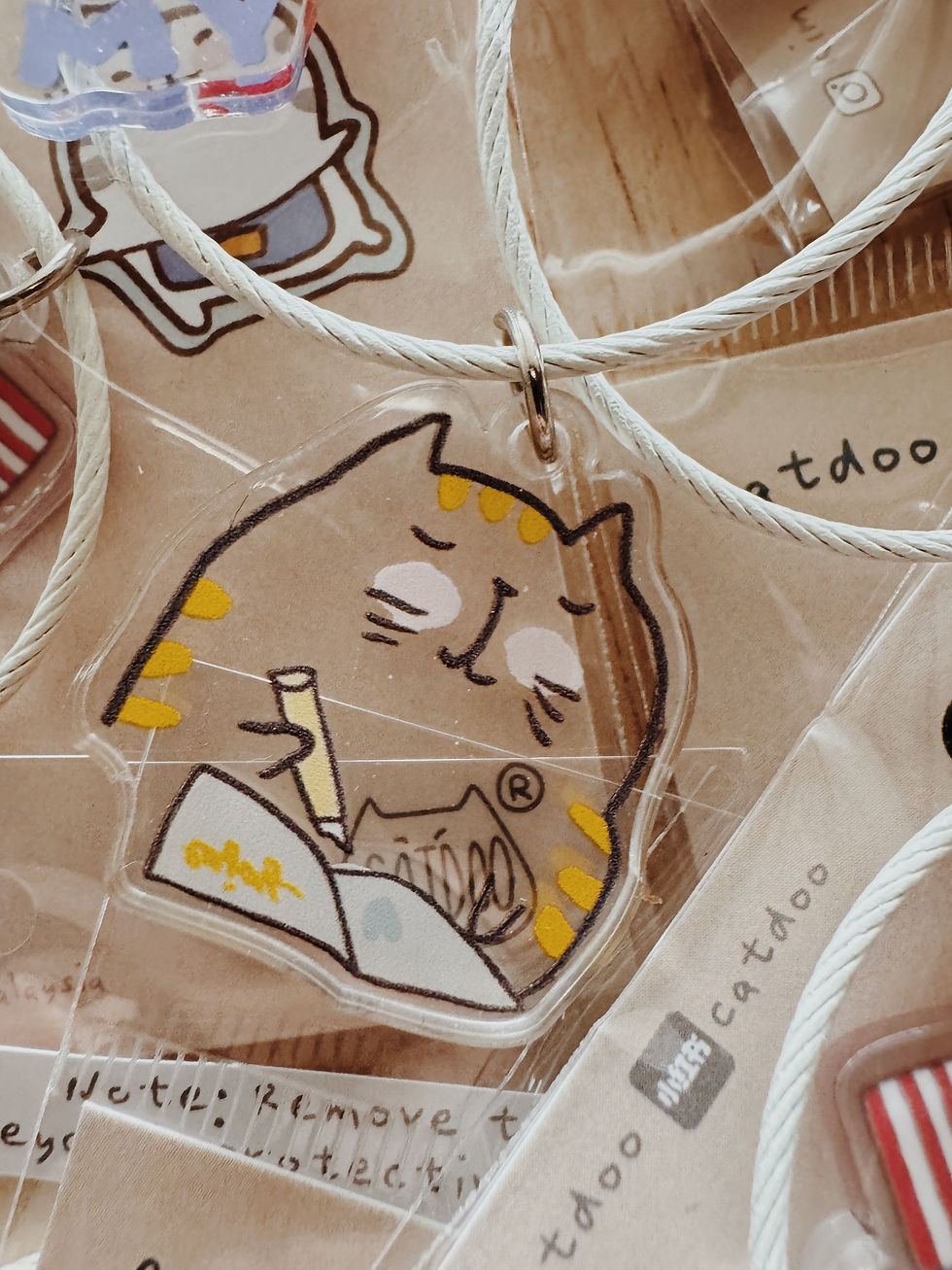 Catdoo key holder - Cat with durian and ikat tepi drink